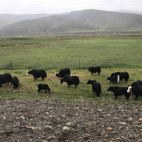 远处的雪山和路边的羊群。到达门源观景台时,下着小雨,门口冷冷清清的,过去入口处询问了一下,说是没有花了,让我们自己先进去看看,也没收钱。