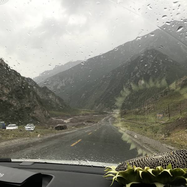 经过最高峰团结峰海拔5808米。车子在一片雾气里行驶。四周被雾气笼罩,终年不散。手从车窗伸出去就是一片雾气,身边的一切都没雾气笼罩,有点仙雾飘飘的感觉,