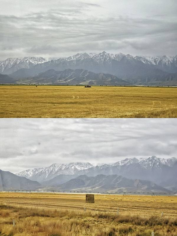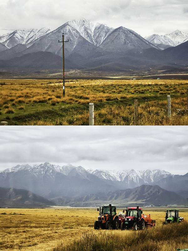 祁连山沿途有村落和小镇,伴着这样的美景生活,是不是心境也更开阔呢