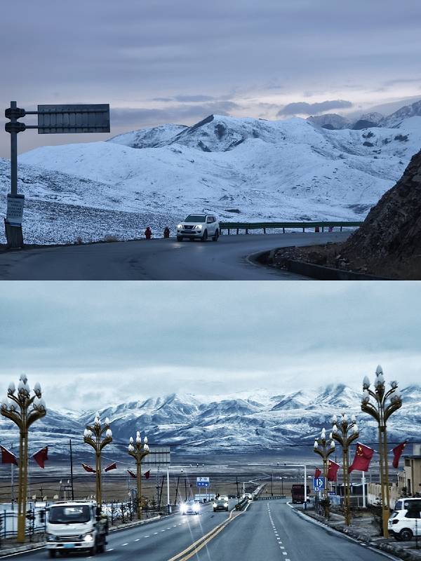 一路沿着祁连山脉行车,途经岗什卡雪山附近时还遇了一小场冰雹。