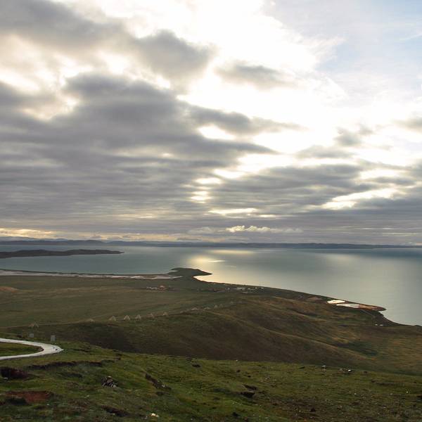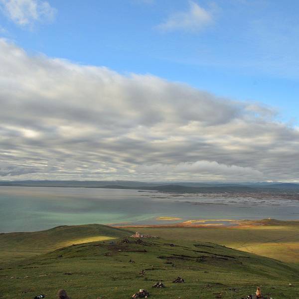 扎陵湖和鄂陵湖,是黄河源头两个巨大的高原淡水湖泊,它们位于巴颜喀拉山北麓的玛多县境内。黄河从卡日曲和约古宗列曲发源后,经星宿海流到这里,被巴颜郎玛山和错尔朵则山所阻,形成了黄河源头第一个巨大的湖泊——扎陵湖。黄河在扎陵湖中经过回旋喘息之后,从湖东南的草滩上散乱地流出,中间又经过一条长约二十公里,宽约三百多米的黄河峡谷,分九股注入第二个湖泊——鄂陵湖。扎陵湖和鄂陵湖海拔四千三百多米,这里地势高寒、潮湿,地域辽阔,牧草丰美,自然景观奇妙,是难得的旅游观光胜地。