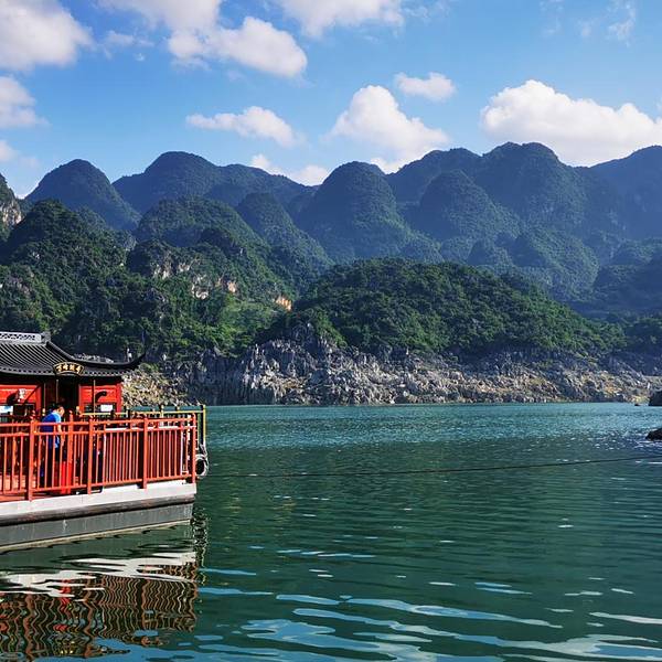 这个船是在红椿码头,在客运南站有到红椿的车,但是只要一班,要中午才到红椿。旅游船的经理很好,早上主动联系我,船是10点开。打了个出租,往返150元,单程30多公里,打表也差不多吧。后边的路是盘山路,孩子晕车,吐在车上,司机师傅啥也没说,等了我们3个小时,贵州人挺朴实的!赞一个^_^ 展开