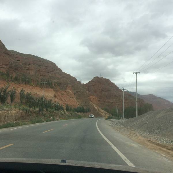 路上经过回民居住区, 到处都是带白帽子的人, 坐在车上, 心里还是有点小怕怕, 一直提醒老公小心开. 经过循化时, 我们还翻越了一座山, 都是大转弯的盘山路, 基本是30,40码的速度, 路上也有不少和我们一样自驾去青海...