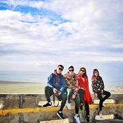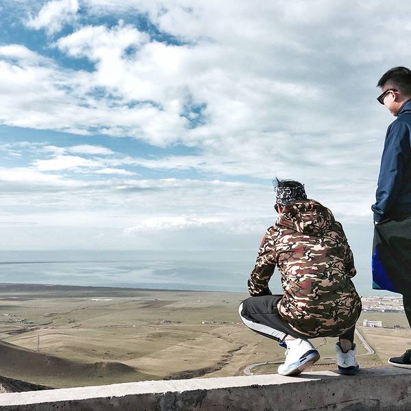 行驶了一段路车子开始爬上山,至半山的时候,转过一个弯,青海湖的全貌就那么突然的出现在我们面前解锁各类拍照新姿势后,徐师傅说要带我们去南山看看不一样的青海湖。