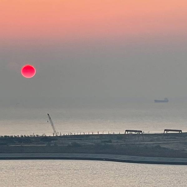 中午坐高铁两个多小时到秦皇岛,我们住的观景房,房间里就能能看到日出,海滩。呆在房间看日出。日出