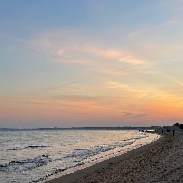 今天天气不错。昨天吃过药,今天感觉好多了,没有发烧了,下楼到海边逛逛……