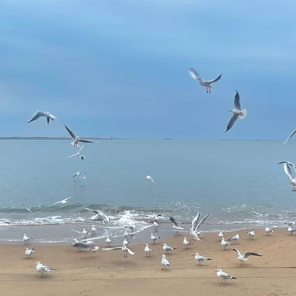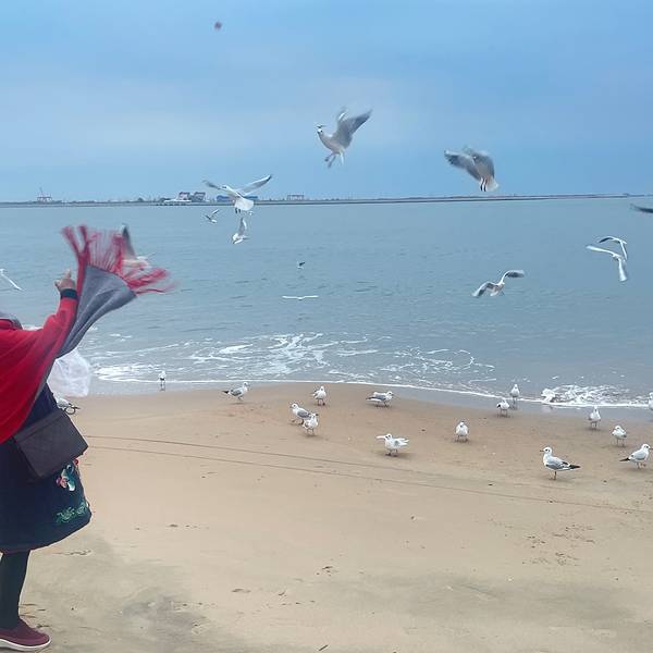 昨天吃过药,今天感觉好多了,没有发烧了,下楼到海边逛逛……喂海鸥今天天气不错海边散步碧蓝的天空因为秦皇岛没有直飞成都的飞机,转机可选的航班也很少,吃过午饭我们坐动车到天津,从天津直飞回成都,结束这次旅行。