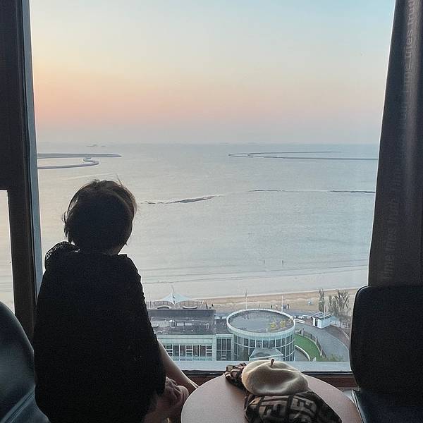 中午坐高铁两个多小时到秦皇岛,我们住的观景房,房间里就能能看到日出,海滩呆在房间看日出日出楼下就是海滩