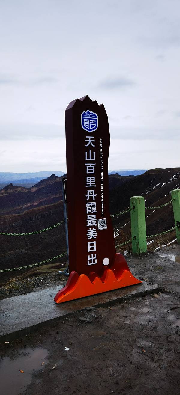 原计划在乌鲁木齐修整一天,吃吃美食,逛逛大巴扎,因为乌鲁木齐的大风,只能留下遗憾了。退房时听酒店前台服务员介绍,附近有一个新联农产品综合市场,顺路去逛了逛,是一个大型的农贸综合市场,,各类物品按区域分布,商品种类繁多,价格比较实惠,如果来旅游想买点新疆特色产品,这里是个不错的选择(可以快递回家)。乌鲁木齐,我会再来!在地窝堡国际机场附近的神州租车提车后,正式开启了新疆的赏花之旅。第一站,百里丹霞!原计划从乌鲁木齐去往终点肯斯瓦特水库,再慢慢返回沿路游玩百里丹霞。在农贸市场购物快递后,出发时已接近下午1点。百度导航将我们导往了一条县道,路况极差,全是坑洼,20公里的路走了2个多小时,时间原因,放弃了肯斯瓦特水库的行程,直接前往百里丹霞S101观景台。 新疆百里丹霞,其实是S101省道上的一段公路旁美景,被誉为"天山地理风光走廊”,绵延不断的山脉雄浑巍峨,山体大部分呈红褐色,橙黄青绿夹杂其间,是视觉的盛宴,摄影家的乐园。 途中除了路况不好,天气也糟糕,一度下起了雪籽,到达观景台时,更是飘起了雪花,山体被浓浓的山雾笼罩,若隐若现,无法看到五颜六色的丹霞全貌。遗憾下山之时,雨雪骤停,果断返回最佳观景点,用相机记录这一刻的视觉盛宴。今天,宿石河子。