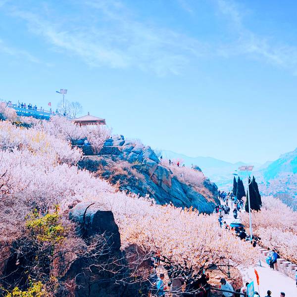 每年3月都是青岛最美的时候,因为这个时期樱桃花绽放。崂山满山遍野的樱桃花都开了。粉色、白色,放眼望去一片绚烂,美不胜收。 初进樱桃谷的时候,就觉得这里和三生三世的桃林特别像,满山遍野开满了白白粉粉的小花,四处散发着樱桃花开的清香,就想着带麦兜同学来感受一下。樱桃花的花期比较短,大概只有两个多星期左右,最好的时候便是清明节前的周末,故而趁着今年清明小长假,果断决定带全家来樱桃谷看花,毕竟春天怎么能缺少得了这种粉嫩的气息。趁着清明出来踏青的人是真的多,沿着松岭路前行,是不是发生交通堵塞,故而我们将车停在了枯桃花卉市场的停车场里,乘坐11号地铁前往北九水站下车,沿着指示牌前往大崂社区,穿过社区就能看到马路对面的樱桃谷正门。 一路上随着同行的游客向里走,进了村子便随处都能看到樱桃花和杏花,满村花香四溢,和熏得春风搭配爽朗的阳光,一片春意盎然浮于眼前。关于门票,往年的都是免费的,从今年起开始收费了。票价20元,一定要在网上提前买好,现场购票需要排很久的队,而且非常麻烦。上山和下山都是一条窄窄的小路,尤其是临近山顶的地方没有修整的土路只能供一人通行,清明这样的假期来所以可以说是相当拥挤啊。 登顶之后沿着马路边继续向里走,就能一览樱桃谷的花海了。 在登顶后距离不远的地方,有一处楼梯,是一条小路,一定要提前看好,从那里下去可以进入樱桃谷里面。在谷里拍照是一件非常美好的事情,就好像置身万千花海,这种美不胜收。整个樱桃谷闲逛下来,大概需要1~2个小时,可以闲庭信步的在谷里闲逛,也可以登高望景,仙里仙气,美轮美奂。