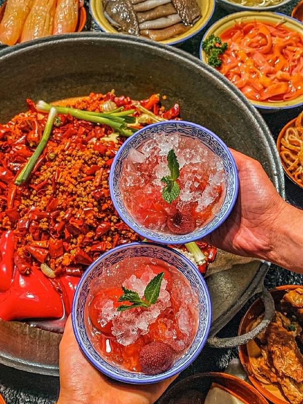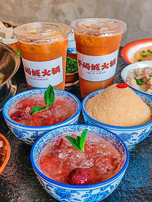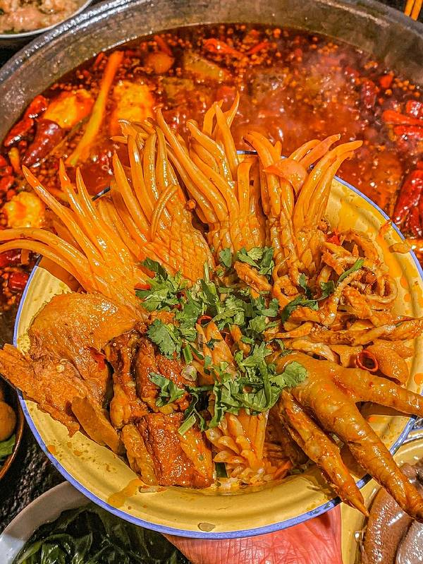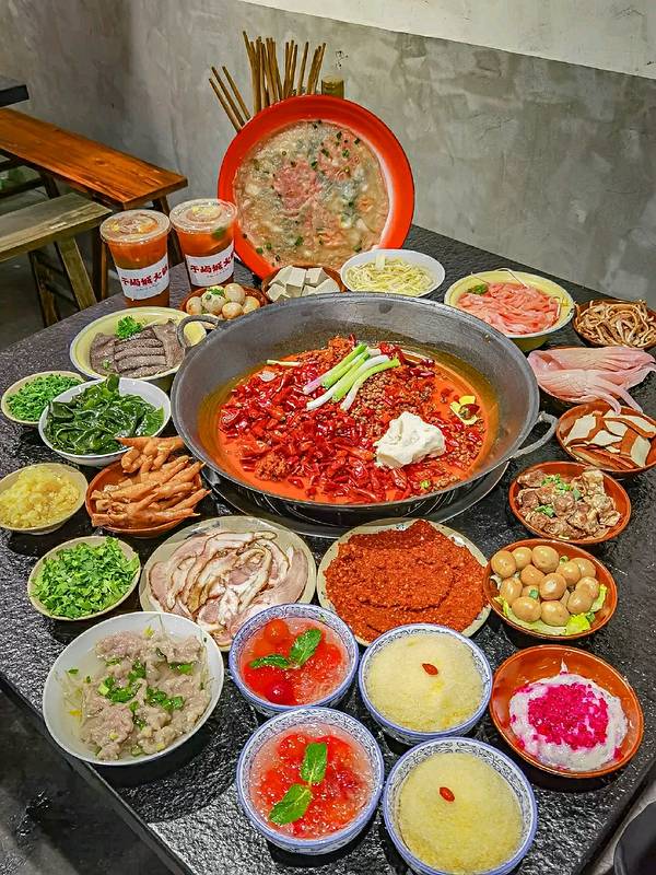 岁月还是留下了美味的痕迹~在这里捡回了童年吃火锅的氛围 ♡ 地地道道的重庆老火锅味!这家新开的火锅店真是又辣又过瘾~味道就是稳!真的是闻着味就进来了! ————————🌵环境🌵———————— 市井气息浓厚🌿非常宽敞的大堂 像是叙利亚战损风~水泥墙,工业风设计! 80,90年代火锅店的氛围感! 墙上都是励志的话语,非常热血! 有一面墙上写着坚持手工制作,窗口可以看到厨房,所以菜新鲜出品都是现切! ————————推荐指南♡———————— 锅底很实在,用料也很扎实!老♡板就是个实在人,菜品堆的满满的碗,一点儿没舍不得! 🍅毛肚肚丝 每日限♡量供应,又很新颖的一道菜 师♡傅刀功很好,毛肚丝切的细细的 可以把毛肚肚丝当面🍜一样吃!麻辣软糯,鲜嫩爽脆 🍅鸿运当头 猪脸,猪耳朵,猪舌头都是胶原蛋白满满的卤味 吃起来都是麻辣里带着卤味,口感是又耙又糯!滋味浓厚,唇齿留香! 🍅手工糍粑 这个糍粑放那里一看就觉得好吃! 追加了一份,蓬松柔软,吃起来香甜~ 蛋炒饭 一定要点一份蛋炒饭,真的好香~ 猪油炒的,那个蛋金灿灿的,上面还有油珠珠,真的好好吃!吃完了简直意犹未尽~ ??手打柠檬茶 酸甜冰爽超♡级解辣! 新鲜手打的柠檬茶,果味香气足!柠檬自带的果味中和淡淡的甜,和麻辣的火锅真的是太搭了~喝的出的新鲜! 💛店名:于屿城火锅 💛地址:二环路东五段132号
