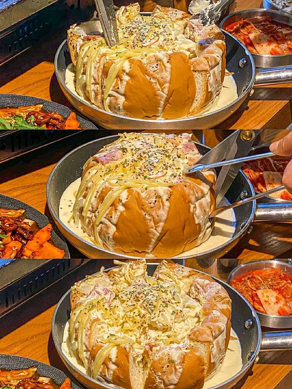 快来吃贴板烤猪猪快来吃瀑布拉丝辣炸鸡!太香啦[流泪][流泪] 装修好韩哦!门口的石子好有济州岛的感觉 另外他们家餐品也太正点了!!! 全部都想吃目前无雷区💣吃一次就沦陷 · 韩式铁板烤猪猪 荤素搭配全程店员帮烤解放双手猪肉被烤得软嫩掺着韭菜豆芽泡菜包🥬太满足了! · 面包奶油培根意面 新品哦店长tui荐[强]浸满了奶油的面包奶fufu 中间的奶油意面口感细腻 意外的不腻?? 夹心的培根🥓分量也足 一盘超大哦! · 🍗 芝士瀑布炸鸡 韩式炸鸡➕芝士碎 拉丝瀑布不要太绝! 芝士咸香都快溢满整家店啦 闻得到的脂肪啊,还加了糯叽叽年糕和解腻菠萝块🍍必点!! · 热情辣海鲜锅 大虾八爪鱼嫩脆鱼皮 香喷喷海鲜汤 香辣口特别开胃不输冬阴功 爱了爱了! · 🐙 八爪鱼辣炒猪猪 分量很足旁边的辅菜包菜也是我的爱有点干锅包菜的赶脚很好吃!八爪鱼QQ弹弹个头也都很大拌炒瘦肉~也是很爱的一道菜✔️ · 巨型杯装水果酒 颜值很高!造型可可爱爱✨倒立了一瓶烧酒🍸水果酒就这样get了~水果的甘甜融入微微的烧酒和韩料太搭了!越喝越上瘾💫 · 大口喝酒大口吃肉真的快落 他家小菜可以无限续鱼皮我们要了三份! · 浦梨创意韩国料理小酒馆by浦梨食堂 莲坂明发商业广场北区166号