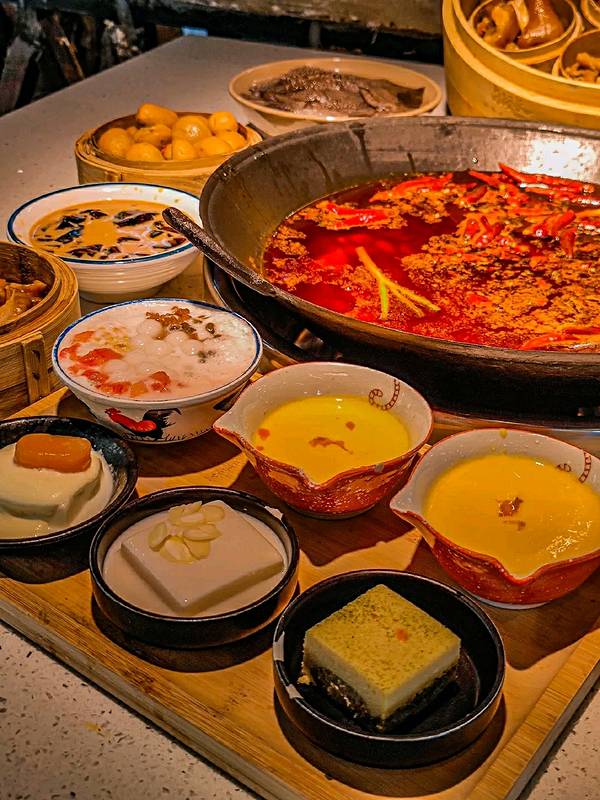 卤鸡脚,卤肥肠,耙猪蹄,耙芋头! 这是把我喜欢的菜全聚♡集到一起了吗! 不仅可以吃卤香,还可以涮火锅!巴适得很! 甜品也是超多花样,完全有甜品店的水准! ————————🌵环境🌵———————— 市...