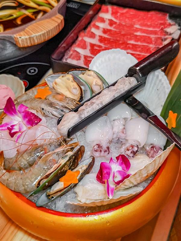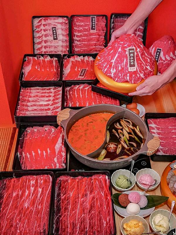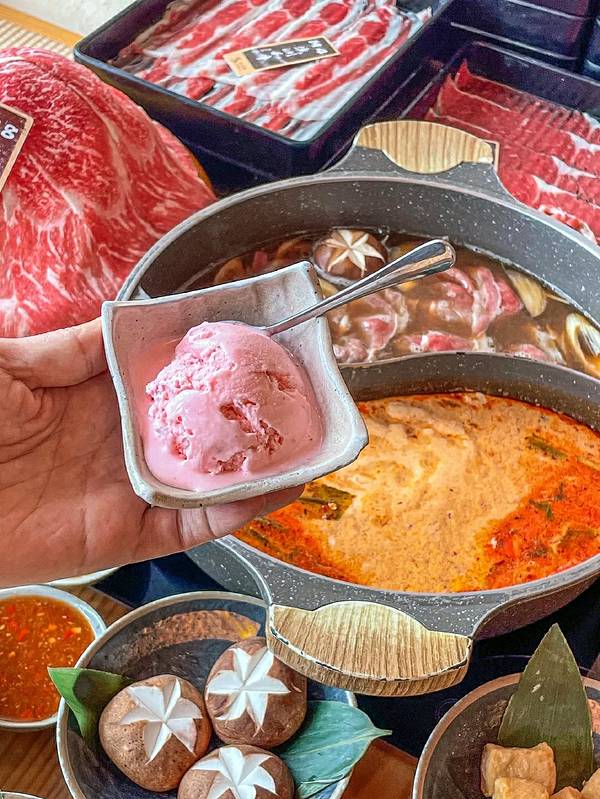 没想到在重庆也开了我最爱的寿喜烧 一路火到隔壁,也是有理由的 在成都就经常排队来吃,工作日也是爆满 人均100r就实现和牛+冰淇淋+甜品自由 简直不要太绝! 锅底推荐寿喜锅+冬阴功 当然也有其他可以选择 个人觉得花胶鸡锅也还不错 ✔️M8和牛 巨大一盆端上来蛮壮观的 很大一片带有雪花纹理,比例很完美 肉质也新鲜,涮熟之后裹上无菌蛋液 ➕一点点酸辣汁,四川胃超爱的 ✔️海鲜拼盘 有6.7种海鲜 墨鱼仔,大扇贝,鲍鱼 大虾🍤虾滑等等 加到泰式冬阴功里面,完美搭配了 ✔️M4和安格斯牛肩肉 偏瘦一些,厚薄均匀 安格斯是我最爱的,口感很棒 每次都能炫好多盘 ✔️冰淇淋/大福 吃完肉肉接着炫甜品 日式大福有4种口味 冰淇淋可以很好的解腻 正合适现在的炎热🥵天气