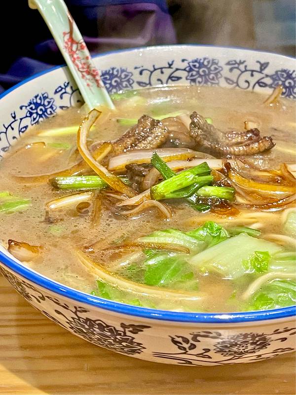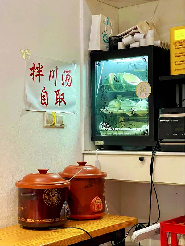 去杭州的武林夜市,搜到这家面馆,不在夜市最热闹的地方,跟着导航找了一会儿,在一幢安静的大楼一楼沿街。 炒片儿川就是炒面,刚炒出锅的片儿川很香;队友选了爆鳝汤面,鳝鱼少了点,味道还不错。 拌川自取蛋花汤,浇头选择挺多的。
