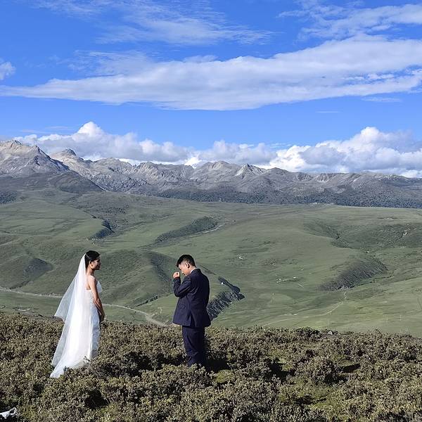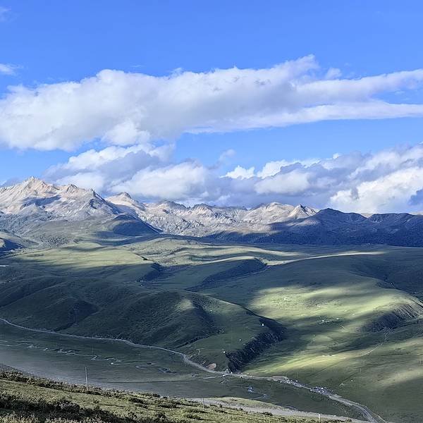 从塔公草原沿省道S434向康定方向行驶25公里左右,就到了格底拉姆的山脚下。上山还有5公里的非铺装路,颠簸不平,坡陡弯急,我们谨慎地行驶了30分钟才到达目的地。 格底拉姆也是一个网红景点,海拔4200米左右。景区处于山顶,地势比较平坦开阔,可以360度观景。进入景区不需门票,但要收20元/人的垃圾处理费。 山上有秋千、灯塔、摩托车、大巴车等摄影道具,还有露营的小木屋,吸引着不少游客来此打卡、摄婚纱照。6点半钟,我们虽意欲未尽,但必须趁天还未黑,离开天空之城,因为下山的路太险了。 继续走S434,然后转入一段新修的无名公路,在接近G318国道时,天也黑了,路也开始堵车了。走走停停慢慢往前挪,10点钟才到酒店,整整耽误了2个小时。进入景区拍婚纱照群山起伏露营小木屋群山远眺