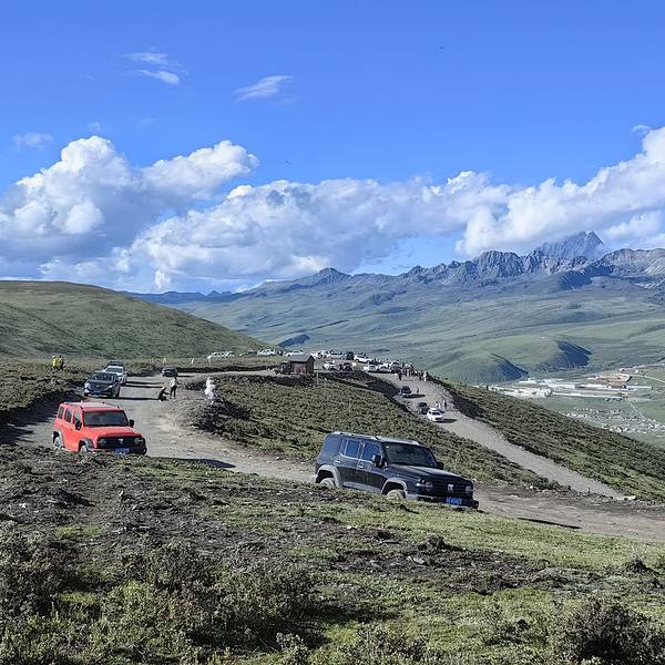 从塔公草原沿省道S434向康定方向行驶25公里左右,就到了格底拉姆的山脚下。上山还有5公里的非铺装路,颠簸不平,坡陡弯急,我们谨慎地行驶了30分钟才到达目的地。 格底拉姆也是一个网红景点,海拔4200米左...