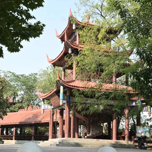 四川南充鹤鸣山: 站在鹤鸣山景区的入口处,一股浓浓的古代建筑气息迎面扑来;向里面望去,路旁的树木郁郁葱葱;走到望江长廊,湛蓝的天空下,阳光照在长廊上熠熠生辉,周围的树木衬托出这里宁静的气氛;站在望江...