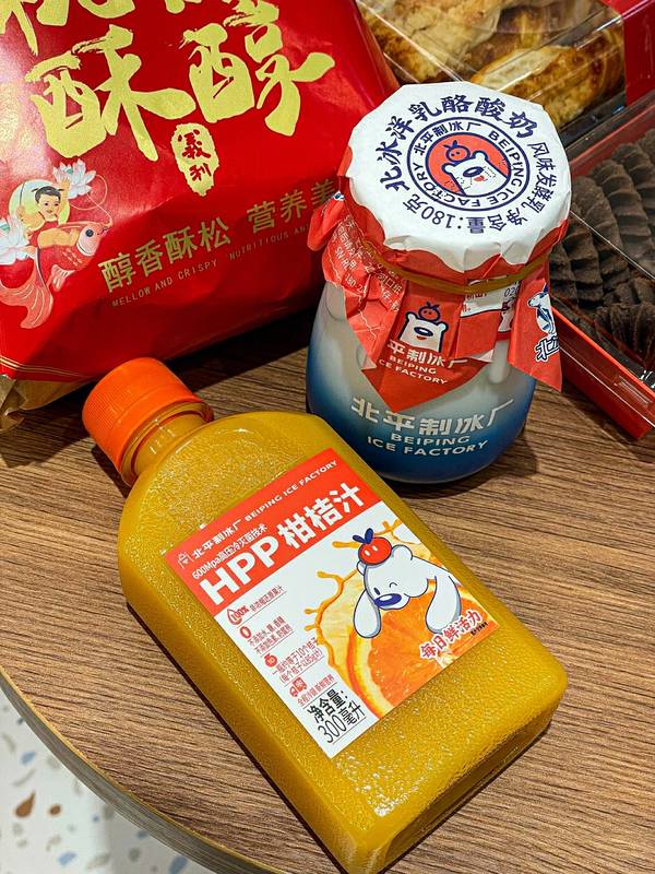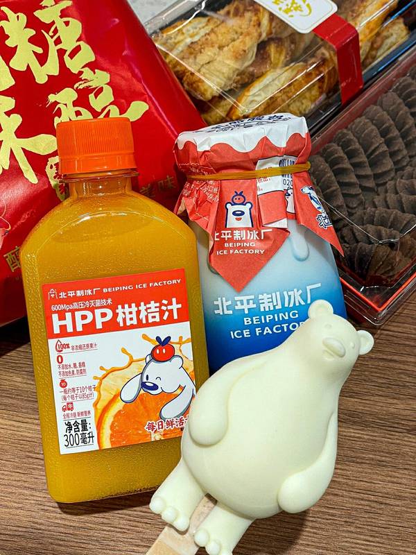 📌建于1936年的北平制冰厂重出江湖!老北京人的童年回忆,大爷看来都得叫一句“爷青回!” 新店开在了老胡同里,📍交道口超大门店新店开业啦。 开业第一天就飞奔来打卡了🌟 老品牌新活力,门口一只大白熊超级可爱! 还有同款Q萌白熊雪糕,熊掌雪糕,还有很多原创蛋糕甜品,奥利奥魔法棒,爆浆蛋糕、老婆饼……看到就走不动道了‼️ 多少北京老小孩小小孩放学后看到这家店都忍不住走进去看一眼 真真满满的童年回忆! 是谁哭了我不说毕竟当年喝这个老酸奶的人现在孩子都这么大了… 新店门面不大但是里面面积很大!还有可以坐的休息区拍照打卡都很方便,多款义利产品、橘子汽水,都是平时没咋见到过的,10几块钱一大盒,真的好实惠😭 尤其是新开的的面包区超级受欢迎了,✔️奥利奥魔法棒超级好吃又好卖!一定要早点去。前几天有开业八折,挺划算的,我看到好几个人都是拎一大袋子走的,不知道这几天还有没有。 还买了他家最新升级的产品:HPP柑橘汁和乳酪酸奶。 🥫HPP柑橘汁一打开就是纯正的浓浓的柑橘味道啊,酸甜口超级浓郁,比起汽水来说这个更健康,低糖版本所以喝起来无负担。 🍶乳酪酸奶吃起来真的跟在吃乳酪一样诶!尤其是最近天气冷一点吃起来就是冰乳酪的感觉。果然是老北京传统工艺做的呀,在北京吃酸奶还是得吃这一口,倍儿地道~-