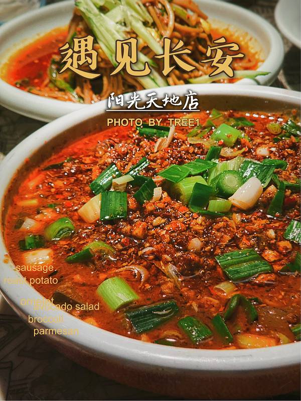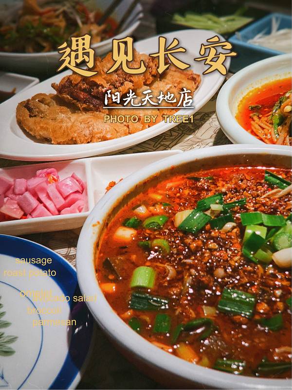 西安美食阳光天地里的遇见长安。 西安阳光天地4楼! 遇见美食,遇见长安,遇见最美的西安美食 网红餐厅,西安名片,遇见长安大以陕菜闻名,以创新知名。路过高新,受朋友邀,算是 上菜速度很快,菜品摆盘漂亮! 我特别喜欢他家的地锅茄子,茄子软糯,旁边的小饼配上茄子的汁水超级香! 铁锅鱼签签特别适合下酒,鱼肉很多,加上各种配菜麻辣可口,还有牛肚,真的是太好吃了,毛肚脆脆的,辣得过瘾!每道菜都特别好吃,还尝了他家的酵面油饼!也是好吃得不得了,配上小菜这真好吃,孜然牛肉加上去也是很爽!大家可以尝一下! 总体来说真的对他家的菜品超级满意,很适合朋友家人聚餐,装修服务都很好,菜品味道更是不错!点赞 西安必吃榜#西安必打卡#千年陕菜遇见长安#西安美食#西安特色#西安攻略#西安旅游#西安周末#西安本地人去哪吃#西安好吃好玩推荐#西安小吃#西安旅行攻略#西安吃喝玩乐#葫芦鸡#西安必吃美食#在西安#西安网红店 #西安去哪玩#笔记灵感#钟楼#回民街#大雁塔#西安特产#遇见长安#兵马俑#地道陕西菜#陕菜