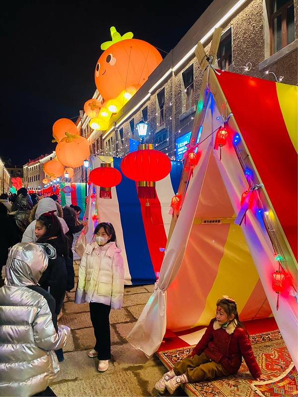 大鲍岛上街里,这个正月太热闹了,几乎天天都是不夜城,晚上去逛,超级好拍! 图1图2是太兴里,大红灯笼挂满整座里院,超有 春节气氛。 图3图4有星星市集的氛围感,小帐篷里可以拍照歇息避避风雪。 图5是青岛出名...