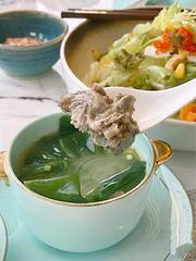 前几天感冒了,一直没有胃口,所以去吃了清淡的芭夯兔,青椒酱不辣 有淡淡的清香味,兔子肉是滑肉类型的非常嫩,这个的话还是主要喝汤哟~我喝了两大碗 真的很鲜很