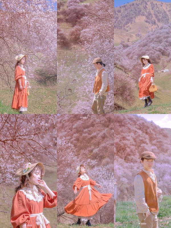 伊犁新源吐尔根乡杏花沟是最出名的,曾出现在冬奥会开幕式24节气倒计时中。每当春天到来,这里便会吸引众多摄影爱好者前往拍摄。这一片漫山遍野,都是原始的野生杏花。它们生长在舒缓的草原斜坡上,覆盖面积3万多亩,非常壮观,是名副其实的“山花烂漫”的景象了。新绿的草原映衬着粉紫色的杏花,是独属于塞外江南的春光。如果你是第一次到伊犁看杏花,吐尔根杏花沟一定是首选!四月的吐尔根,像铺上了一层粉黛纱布! 千里迢迢去伊犁看杏花,就别光拍风景啦!来看看我们在吐尔根杏花沟拍的人像。这次选的是偏田园童话风格的服饰、卷发、草帽。因为杏花在镜头里看着会比较稀疏、不显色,建议选择花枝比较低且浓密的地方拍摄。攻略: 🌸花期:3月底-4月中 ⚠️特点:面积广(3万多亩),花种纯,漫山遍野,浪漫至极 🚗交通:租车自驾最佳;另新源县客运站有前往吐尔根的线路车 📒Tips:1.建议携带长焦镜头、人像镜头,前往花丛比较密集处拍摄; 2.景区游览可选择步行或者骑马