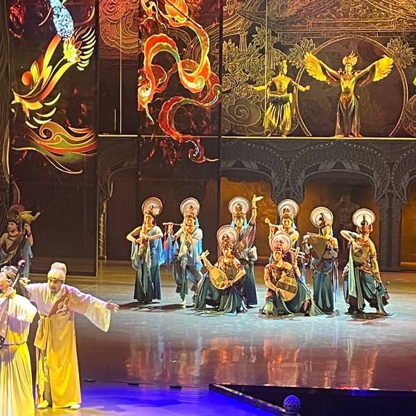 《又见敦煌》淡季停演,晚上可以看看《乐动敦煌》,也不错,舞美灯光很棒,表演形式新颖,参与感很强。