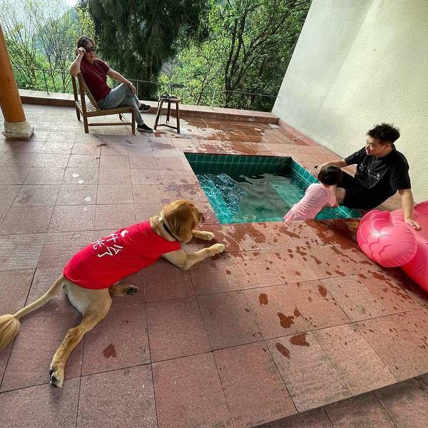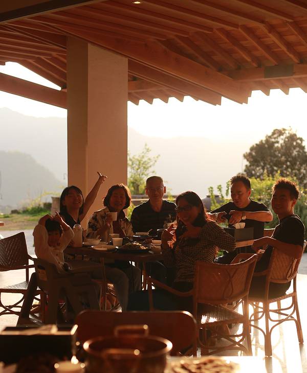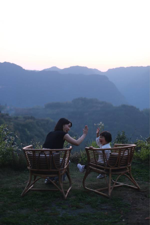 这是坐落在四面山深山中的一个民宿叫“大乐之野”名宿。这里的设备应有尽有,带泳池,泡泉、咖啡厅、棋牌室,服务态度也超级好,晚上还有篝火,但是价格也不菲哟!这是真正的解压游,无事喝咖啡,观云卷云舒最美不过夕阳红天天狗狗也是我们的成员之一一米多的温泉泡池是宝儿的乐园在夕阳的映照下的晚餐,无限的温馨。山野的宁静开心一刻带上超大游泳垫,用不上。甜蜜💕夕阳西下后的余晖一家人的篝火晚会,外公吹电吹管,两个老年大学的唱,宝儿跳,其乐融融第二天,土地崖,望乡台瀑布坐副驾驶位的汪汪小帅哥去观天下第一岩的路上开满了鲜花坐在台阶上休息吃开心果土地神岩,“高瀑润丹霞,四面画赤壁”号称亚洲第一岩,估计是他的高度和它的笔直的形态土地岩瀑布望乡台瀑布景区小人国度的住宅与兴心瀑布对应的山盟石,2.58*2.58,重1314.789公斤!寓意,爱我吧,一生一世一起走海拔951米得望乡台瀑布,号称华夏第一高瀑。望乡台瀑布是四面山的标志性景点,瀑布高158米,宽48米,是四面山最为壮观的景点望乡台瀑布是有两层,在他的第一层的下面,还有人工的喷泉“天下第一眼”其实是一个岩洞,在这个地方是观对面心型的望乡台瀑布的最佳景点,有你在我眼中,我在你心中的诠释在瀑布下面,宝儿开心极了,大声呼喊瀑布,你好第三天 水口寺瀑布、龙潭湖,观猴,孔雀、娃娃鱼二十多年前去水口寺瀑布,山腰栈道,没有护栏,只有一条粗粗的铁链,瀑布水特别大,栈道上湿湿的担心滑倒,我和女儿完全是双手双脚爬行地穿越栈道,远远的看见了水下非常美丽的彩虹,这次去重游水口寺瀑布,栈道上修了石墩一样的栏杆,再也没有恐惧感,瀑布水也很小,也没有彩虹,唯有幽静陪伴我们,清澈的潭水,倒影我们的倩影。不见了昔日的气势磅礴,平添了一份凄凉。水口寺瀑布潭边回眸间幸福时刻会心一笑三代美女独享版龙潭湖的猴山,工作人员说大概有近1000只猴,有人专门投食,那里还有孔雀 龙潭湖幽静,有一个地方真正的四面环山,听说就是四面山的由来 游客喂猴是关在一间小屋里,外面爬满了大小猴儿,投食时惹恼了一只猴,把我的长头发抓住,还有一会儿它又放开了,吓死宝宝了两条1.5米长的娃娃鱼,有一条就是从龙潭湖打捞的有20多年了,另一条是2017年送来的。娃娃鱼的玻璃池子里有很多半斤左右的鲫鱼,是喂娃娃鱼的。