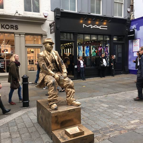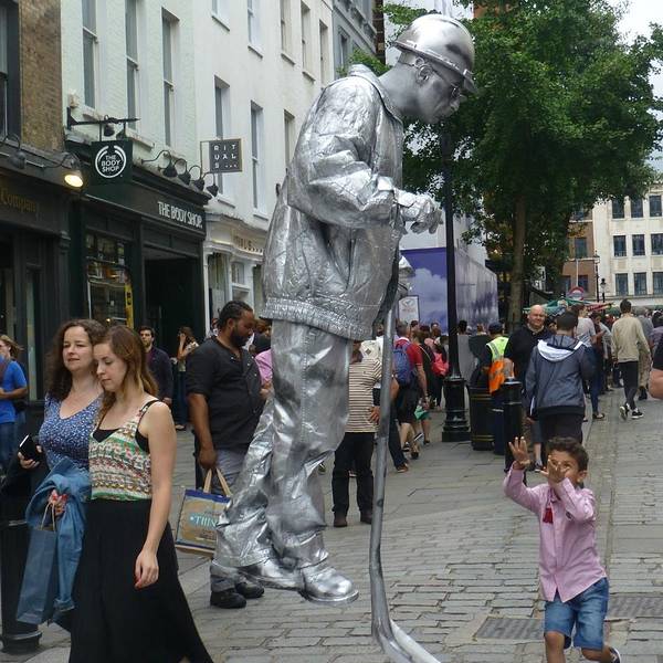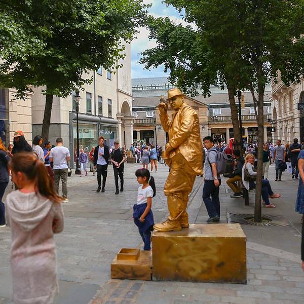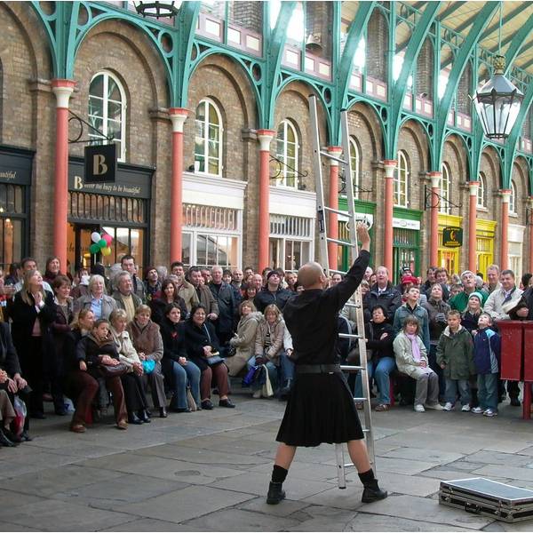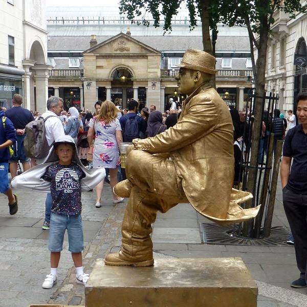街头表演考文特花园旅馆很奇怪这些人是怎么一动都不动的还做这么难的动作的