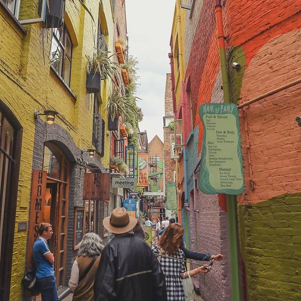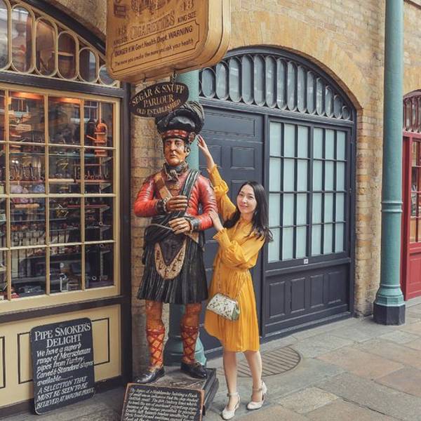 考文特花园是伦敦市最独特的地区之一,从手工艺品到英式点心应有尽有,聪明的本地人和时髦的游客纷纷涌向这里的酒吧、特色餐馆、时尚服装店、大众品牌时装、特色手工艺品及咖啡店、各式文化集会,从花街 (Floral Street) 时装展到简单的露天广场户外娱乐活动,再到众多的深巷探宝,以及时不时的街头艺术表演,科文特花园总能让人充满好奇。和市集一样,这里可以买的手信也特别的多,我们在这里买了一些英伦红茶带回家作为礼物送给家里。这家始于1886年的whittard已逾百年历史,但其实这里的茶叶都来自于它们在斯里兰卡的茶园。最厉害的是这里居然还可以用支付宝,支付宝还给自动打了折,超方便呀!看来来这里买茶叶的中国人是真的不少呢!帕丁顿熊里的露西婶婶曾说,在伦敦每一个人都是不同的,但这也意味着任何人都可以进入伦敦。 走在街道上感受着伦敦独特的气息和色彩,这里的每一个转角都让我欢喜。被鲜花簇拥着的门店招牌,似乎在伦敦有很多以鲜花为主题的网红店。其实来英国旅行,即使留出一个星期给伦敦都远远觉得不够,所以很多著名的景点和打卡清单我只能留下一些小遗憾,当做下次再来的动力~随处可见的复古小车车,街道本身都是美丽的风景。Neal's Yard 又被称为彩虹巷,也是INS上很火的一个点,其实只是一条很短的彩虹街道,大约是因为英国的天气总是令人苦恼且捉摸不透,所以这样的色彩才会让心情更加明媚,这也是大家都喜欢来这里的原因之一吧~