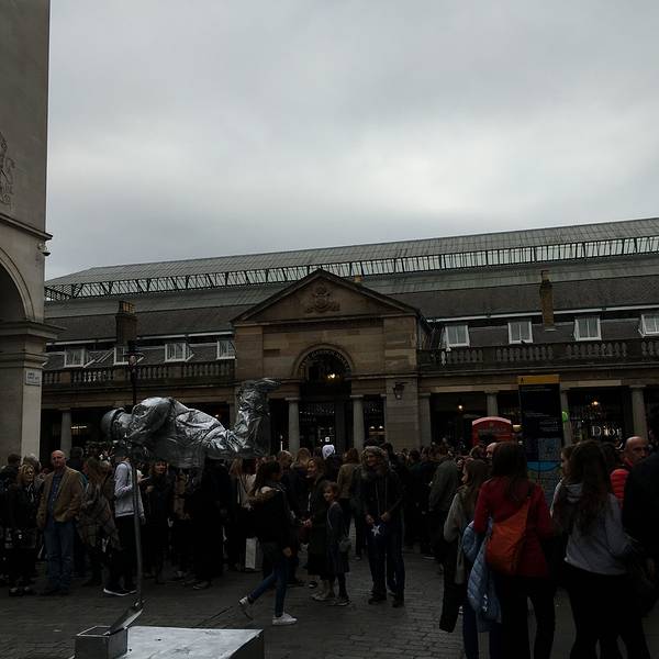 这里也是伦敦一个著名的市场,建于十八世纪,很古罗马风格。曾经是英国最大的蔬果花卉批发市场,后来慢慢发展为各种小商品市场,也汇集了很多酒吧餐厅服饰小店。我去的时候,市场顶上漂浮着许多像云朵一样的白色气球,这是法国艺术家的作品,名叫“入侵”,表达当代社会人与人之间的相互关联。