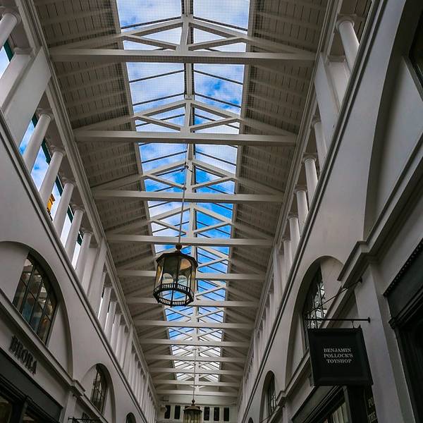 这里也是伦敦一个著名的市场,建于十八世纪,很古罗马风格。曾经是英国最大的蔬果花卉批发市场,后来慢慢发展为各种小商品市场,也汇集了很多酒吧餐厅服饰小店。我去的时候,市场顶上漂浮着许多像云朵一样的白色...