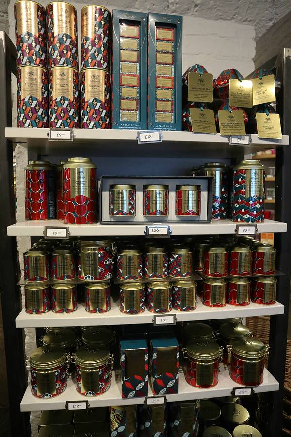 午后4点我们回到中心区考文特花园~这里是一个开放式的街心花园购物区~最中心有并列的小商品市场,里面可以坐着看一下当天的街头表演,两旁也有英国本土的商店可以购物,外围首先是一条名品购物街,往前走会看到著名的网红点NEAL'YARD,继续走就能走到热闹(很乱)的唐人街和著名的西区剧院集中地,几大块都是连着的,可以逛一整天拱形商场内可以坐着欣赏街头音乐家的演奏考文特花园有着两家whttard茶叶店,买手信的好地方,英国老品牌,在世界各地有着历史悠久的茶叶园~考文特花园的这家隔壁还可以享用下午茶~喝过下午茶的我们爱上了英式红茶的顺滑口感,不同于国内比较苦涩甘口的红茶,这次也选了两盒英式早餐茶(见上图)回去,还可以现场选择不同颜色的茶叶罐包装,我们选了古朴的伦敦灰蓝和优雅的紫色,光美丽的茶叶罐都值这个价格啦!本来想选一套特别古典的英式茶具回国,但这家全都是爱丽丝仙境系列,图案一般,显得不怎么值得收藏爱丽丝系列茶叶罐圣诞系列~打卡姆明商店~逛考文特花园真的需要时间,如果不是寻找某家店我们也不会逛到交接的其他两条路,原来全是热闹的步行街,而且很多熟悉的品牌,可惜没能逛完