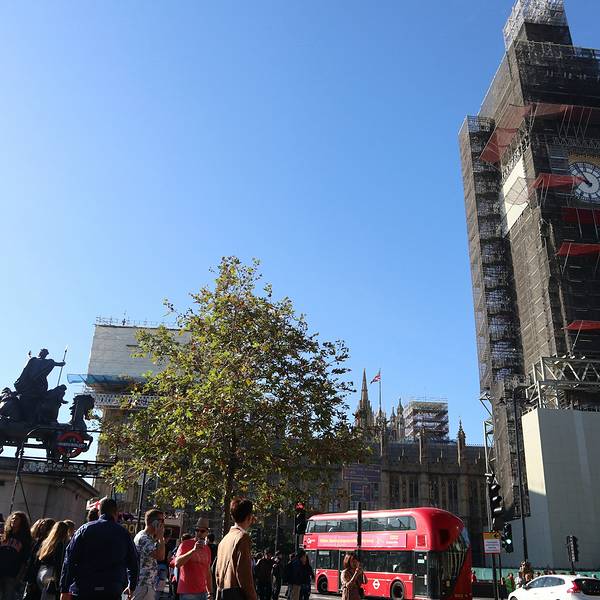 装修中的大本钟,大概2022年才能修好,到时再来看遥望着议会大楼的丘吉尔装修中的大本钟,大概2022年才能修好,到时再来看唐宁街10号的路口