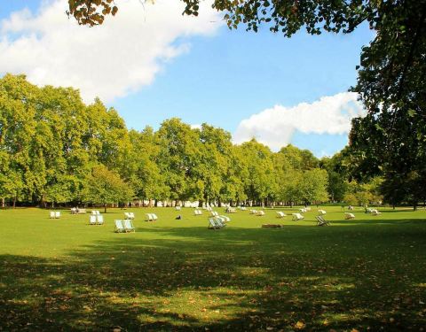 伦敦市较丰富的公园。它曾是国王亨利八世的猎鹿苑,19世纪初经过整修,园内翻新了修长的人造湖以及画坛,现在已经是伦敦市美丽的公园之一。圣詹姆斯公园东面是骑兵卫队(Horse Guards)马路,西面是白金汉宫,北面是林荫路和圣詹姆士宫,南面是鸟笼步道(Birdcage Walk)。内有圣詹姆士公园湖和鸭岛、西岛两座岛。常年有鹈鹕、天鹅等各色水禽出没,可谓赏鸟天堂,野趣盎然。每天下午3点饲养员会给它们喂食,这时站在圣詹姆斯公园湖的人行桥上看白金汉宫,成群的天鹅和白金汉宫相应成趣。 漫步公园,远眺白金汉宫你可以在圣詹姆斯公园湖的人行桥远眺白金汉宫,当白金汉宫的夜灯亮起,分外迷人。也可闲散漫步在南面的鸟笼步道,鸟语花香,让人特别放松。中午游园还可以聆听精彩的露天午间音乐会,夏天可以租个躺椅,晒晒日光浴,享受美好的音乐和风景。