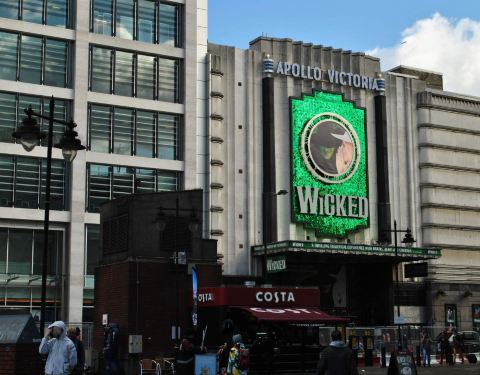 剧院由E.Wamsley Lewis于1930设计建造,内部观众席承袭了来自法国的Art Deco风格 (新艺术风格),加上大量海洋主题;穹顶上则运用了华贵的贝壳形状的花纹。不过剧院在1930年开张后就一直不温不火的在西区经营,直到1984年一部叫做Starlight Express的音乐剧大热,剧院因而开始跻身西区排名前列的剧院。同其他西区的剧院一样,将近百岁的Apollo Victoria剧院被列入Grade II保护建筑。招牌剧目音乐剧Wicked(《魔法坏女巫》)作为绿野仙踪前传,讲述了绿魔的诞生。早在桃乐丝未被吹到奥兹国之前,已有两个小女孩在这里相遇。他们其中一人拥有翠绿色的皮肤,为人聪明和热情,但却经常被人误会。另一人则漂亮、有雄心和受别人欢迎。不知为何,这两个不大可能成为朋友的女孩会分别变成西方的邪恶女巫和北方的善良女巫。