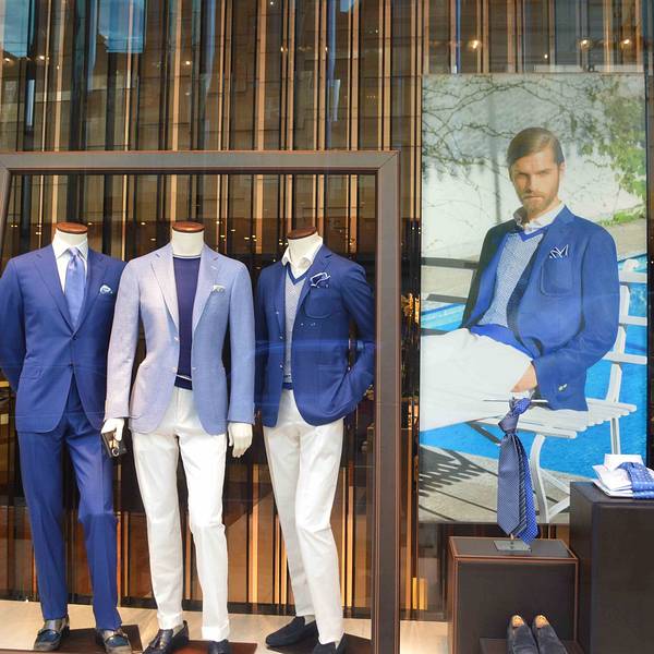 - 并没有奢侈品店常见的艺术品陈设和繁复装饰,除了橱窗里陈列的西服,根本看不出此地是定制男装界的 麦加