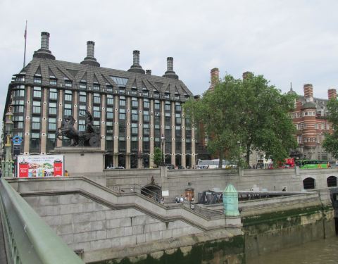连接伦敦眼和威斯敏斯特城的一座主要大桥 从伦敦眼上面看挺长的 人也很多 好像经常有交通管制的 桥上可以走 来往两岸很快 看桥基座也有挺多年了