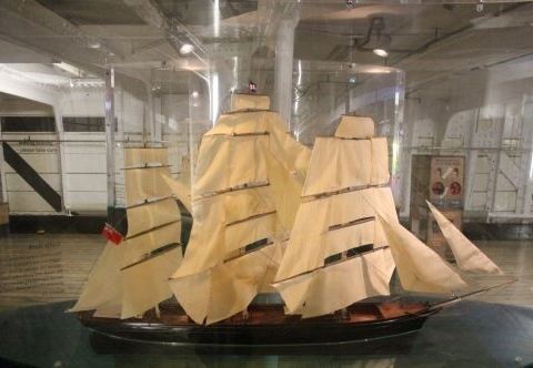 从码头下船后,首先看到的是卡蒂萨克号。它是世界帆船史上航行速度最快的一艘船,代表着帆船建造技术的顶峰。船舱内有当年进行茶叶贸易的一些介绍。