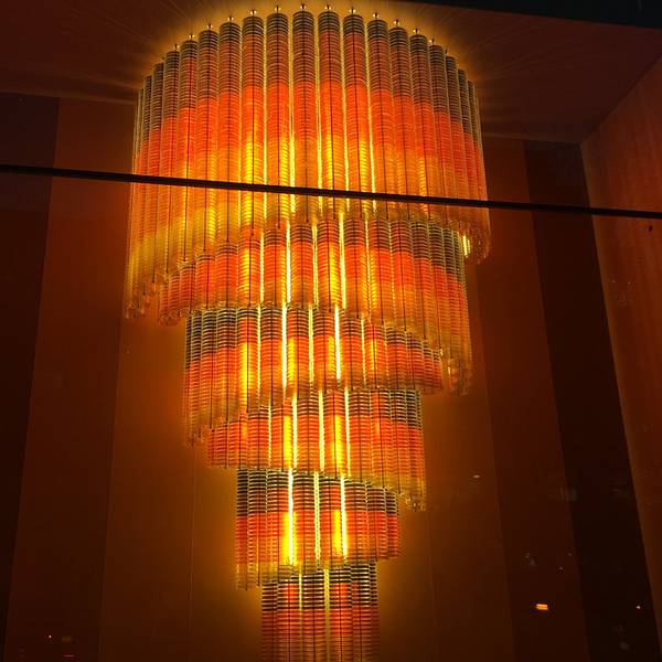 是一个还算有趣的博物馆, 博物馆外面的展柜里有如下的展示,由英国设计师Stuart Haygarth设计,他是一个非常善于观察的设计师,他总能将日常生活中一些小物件发挥想象,变成一件令人惊艳称奇的作品,无论是纯净水瓶製成的树挂装饰灯亦或者是载有3000镜头的直径1.5米的巨型吊灯等。 展开