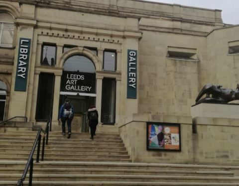 乘坐公交车至Leeds City Centre, The Headrow (stop H1)下车,步行即可。