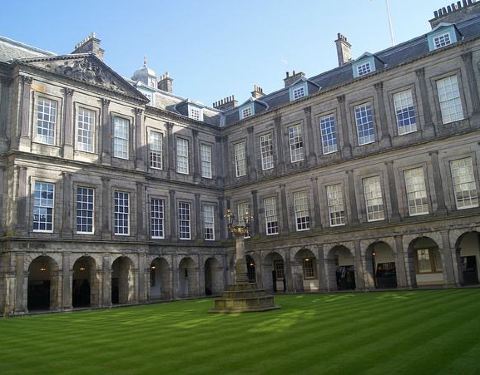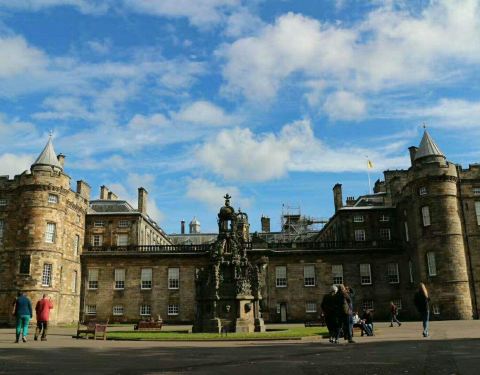 宫殿围墙上是白马金雕的皇家徽饰,绿蓝格子裙裤的工作人员随意地进出,苏格兰风情安然若素一座精美的巴洛克式宫殿,橘红色的古堡碉楼,宽阔的广场,女王的皇家气派不怒自威。宫殿围墙上是白马金雕的皇家徽饰,绿蓝格子裙裤的工作人员随意地进出,苏格兰风情安然若素。