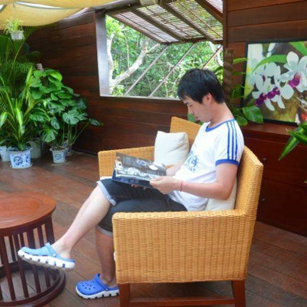 今天的任务是热带天堂森林公园,我们提前一天在携程买的门票,俩人能省将近100,吃过早饭,酒店接待生给我们叫了出租车,叫来的出租车要多给司机师傅5元钱,酒店离公园也不远,因为没有公交,所以必须打车了。今天的目标是感受一下舒淇走过的吊桥还有舒淇葛优的试婚房,哈哈。 其实这个森林公园的亮点就是“非2”拍摄的地点,很多人都想去看看三亚的鸟巢,风景嘛还真是一般,我觉得不敢兴趣的完全可以不去。