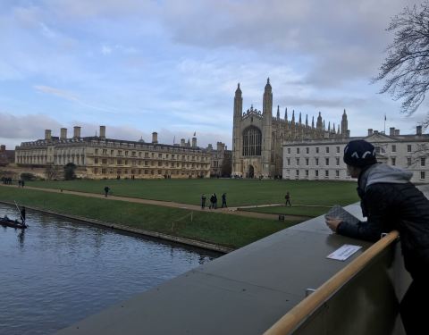 从教堂参观完出来就是面对剑河的一片巨大的草坪,而走过有些弹子石的道路,到剑河边回头,巨大的草坪搭配雄伟的教堂特别有感觉。很多人都喜欢在这个角度拍教堂主体建筑,当然剑河的小船也是从这个角度欣赏国王学...
