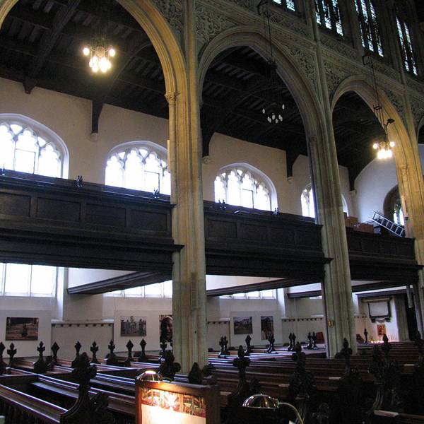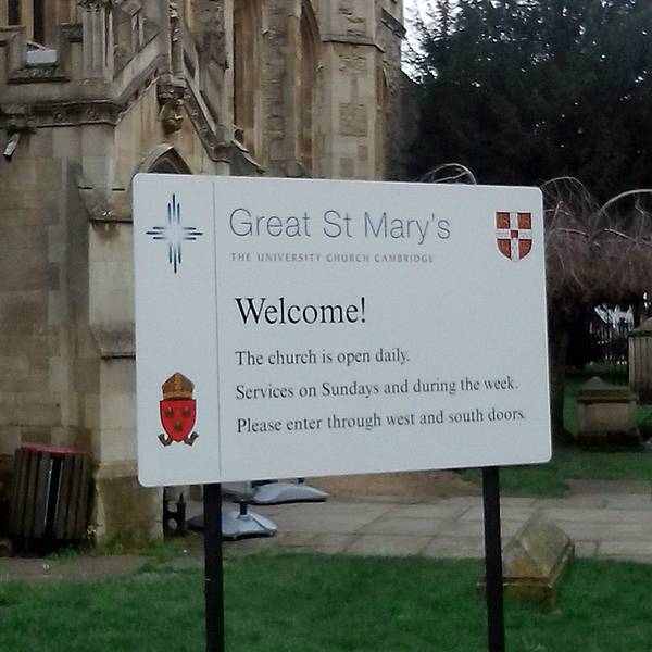 圣玛丽大教堂 Great St Mary's,坐落在剑桥市的中心地区,在国王学院大门口的斜对面,位置非常好找,看到国王学院,就可以找到圣玛丽教堂。教堂的面积不算很大,但是历史悠久。走进教堂,就有一种古老而又庄严的感觉,教堂里面也很漂亮,欧式的教堂彩绘玻璃,给你那种美轮美奂又神秘的感觉。去的时候不是星期日,所以没有很多人去做礼拜,教堂里面很空旷,只有两个非常虔诚的教徒坐在那里默默的祈祷。登上教堂的塔楼可以看到整个剑桥的风光。教堂的钟声十分有名,后来伦敦的大本钟的钟声就是模仿圣玛丽大教堂的钟声。 教堂很快就能参观完,所以游客可以先来圣玛丽教堂,然后去国王学院,圣约翰学院,沿着这一条线,去参观剑桥的一些其他的学院。