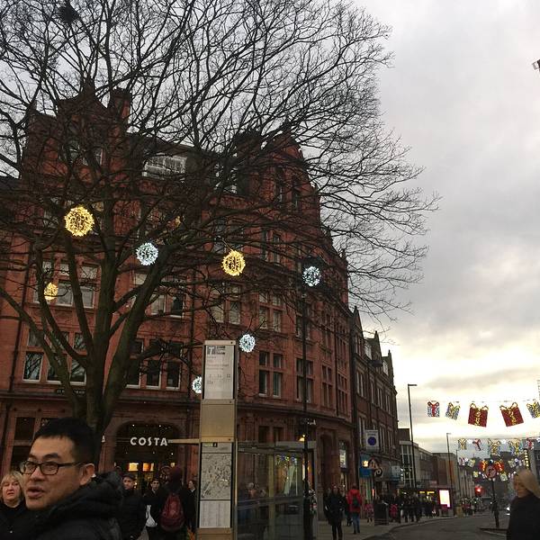 大学宿舍旁边的兰州拉面,食客大部分都是中国留学生。不光有拉面,还有呷浦呷浦。感受英国的自酿啤酒。丰盛的午餐,还有英国的地方美食,fish and chips。透过教堂的大门去看街头来去匆匆的行人,每个人脸上都是圣诞喜悦的笑脸。夜幕即将降临,此刻是当地时间4点半,夜晚的来临要比北京早上40分钟。