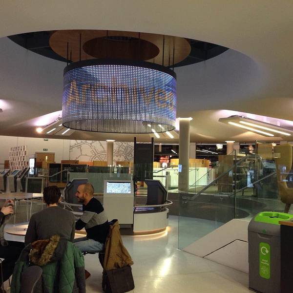 曼彻斯特中央图书馆主阅览室天花板非常漂亮,书籍的选择是首屈一指的,里面还有虚拟的墙壁曼彻斯特中央图书馆主阅览室天花板非常漂亮,书籍的选择是首屈一指的,里面还有虚拟的墙壁。里面的建筑很古老,有很多历史手稿,交互式计算机展览可以查询当地的历史,还有专门的电影档案馆,二楼是音乐图书馆。