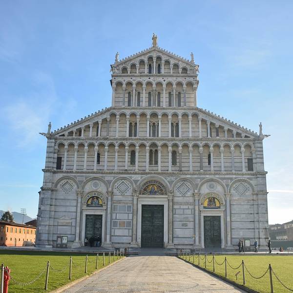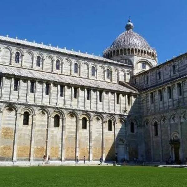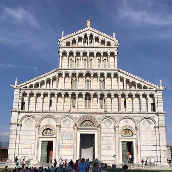 比萨大教堂是为了纪念比萨城的守护神圣母玛丽亚,1063年比萨人开始在城区东北角的广场上建筑具有所谓罗马-比萨风格的大教堂,