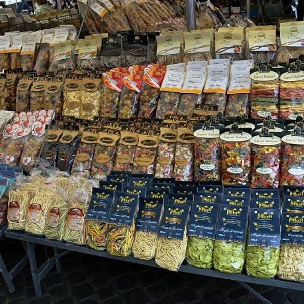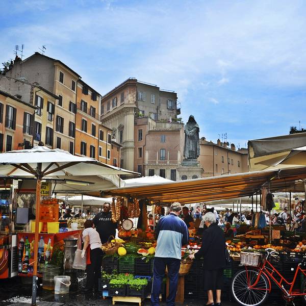 中世纪时期,死刑通常在鲜花广场公开进行,广场上设有永久绞架。自从1869年以后,除周日外,每个早晨都开辟为蔬菜和鱼类市场,鲜花、杂货等小贩也都聚集于此。这里最多的是贩卖蔬果的摊位,其次就是出售意面、蜂蜜、香料、红酒和鲜花的商铺。下午后小贩散去,到了晚上成为年轻人热爱的啤酒花园。